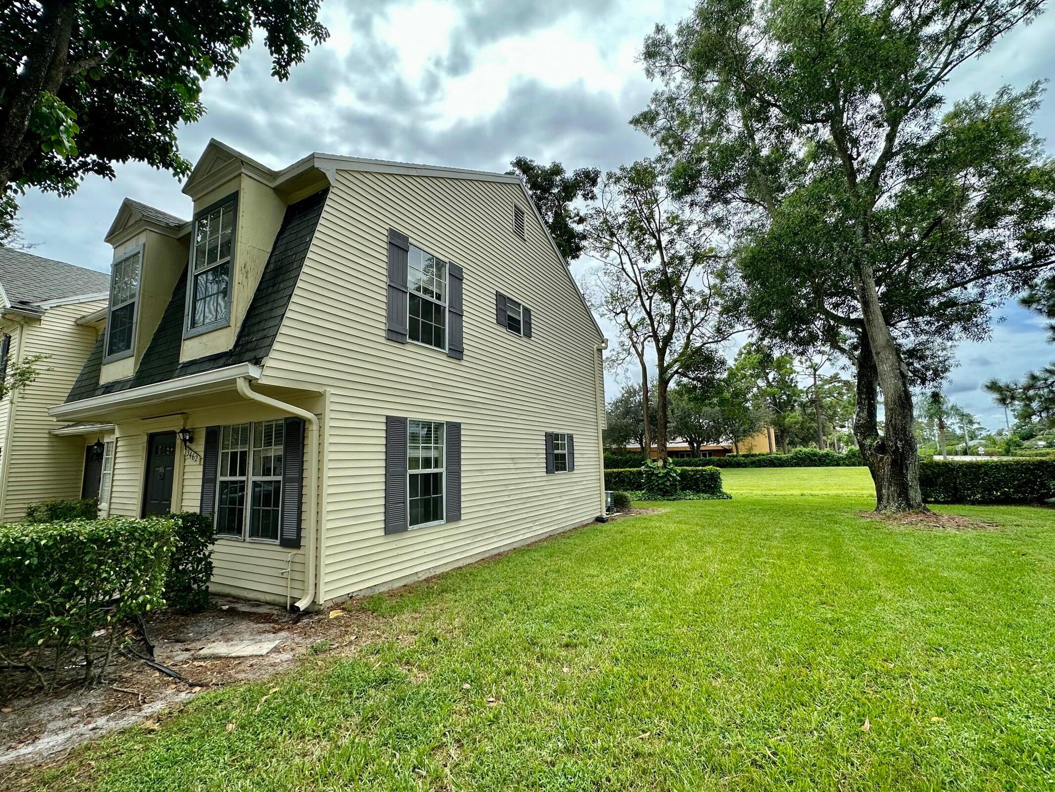 Welcome home to this light, bright rental located in the heart of Wellington. This 3 bedroom end unit townhome ( extra windows) is located next to grassy space and adjacent to a peaceful canal. On the first floor you will find a generous living space, dining area, kitchen, 1/2 bath and back patio. Upstairs you will find 3 bedrooms and two full baths. Located in an A rated school zone, this location can't be beat! Community features a pool for residents. Schedule a showing today!